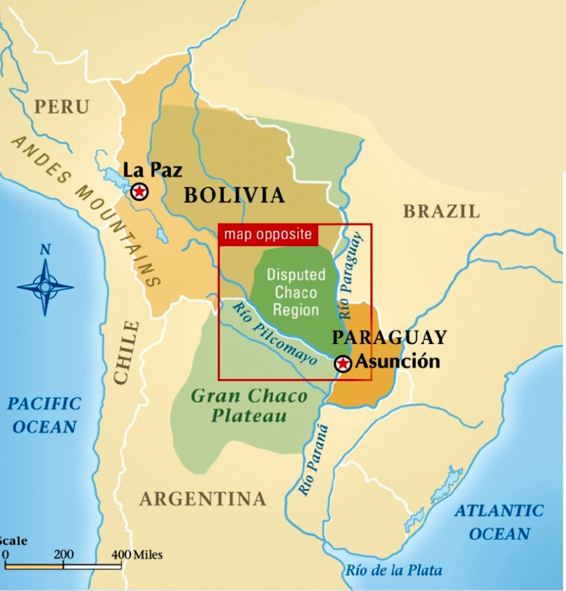 Estos países no tenían certeza de los verdaderos limites fronterizos y fueron a las armas por presión de la compañía americana Standart oíl company que presionaba a Bolivia para que tomara el control del territorio del chaco y así tener acceso al rió paraguay, única opción para sacar el petroleo hacia el mar Atlántico.